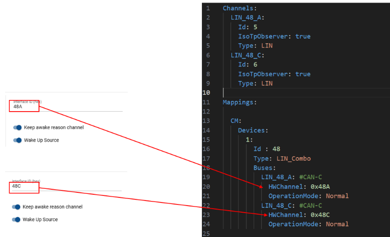 In the following section, we present the corresponding LIN YAML configuration, showing channels A and C and their mappings.