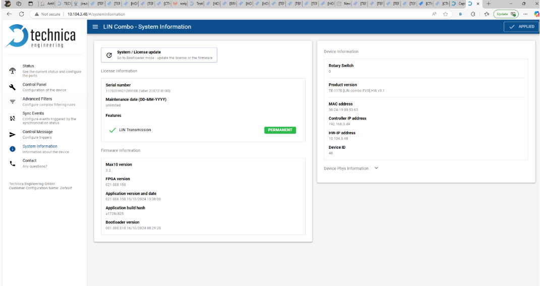 4. Platform access: Once the user ensures that the Capture module device is reachable, he (she) can access its web page. From there, he (she) retrieves the relevant system information that needs to be verified, including the latest firmware version and the license.