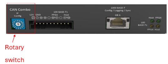 1. ID device check: A rotary switch is located on the left-most part of the front side of the CM LIN Combo. This element allows the configuration of the IP address. The user should check the position of the rotary switch to ip of the device. From the IP we can detect the device ID: corresponds to the last byte of the IP address of the Capture module.